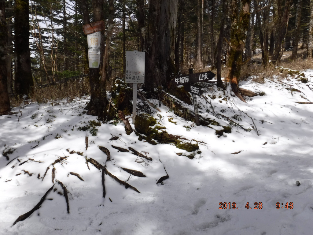 4月10日の大雪の影響か、山伏へ向かう途中、標高1500m以上あたりから雪が残っていた。