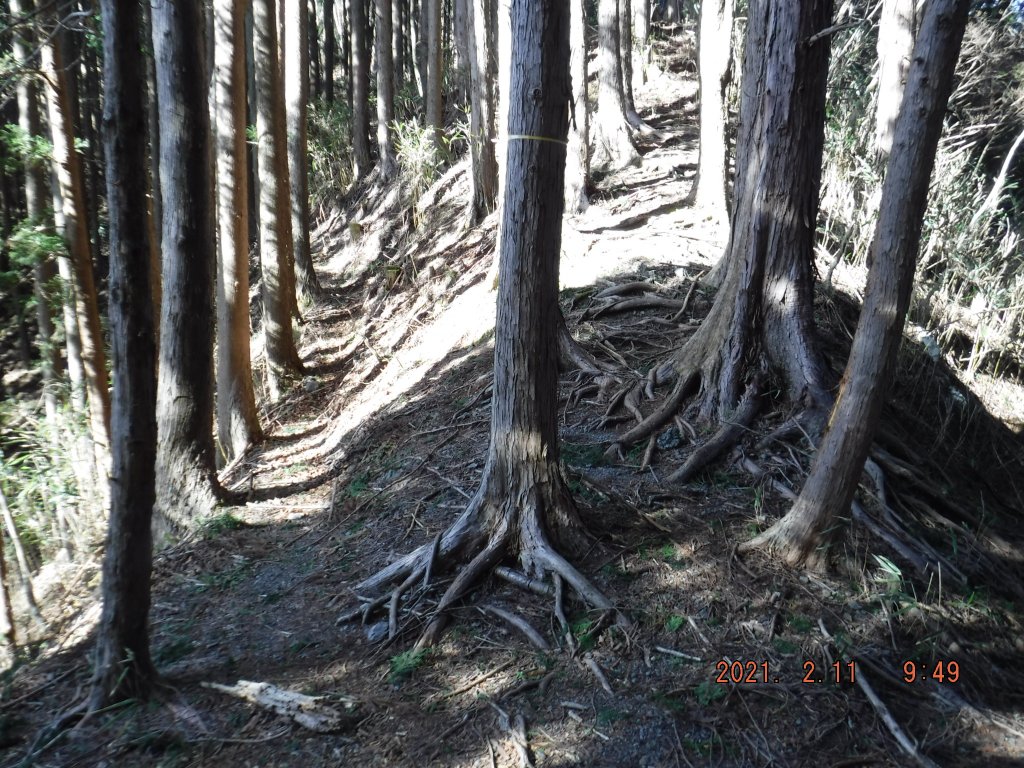 GPSの軌道は、北側にずれている部分があるが、実際は、尾根上を歩いている。